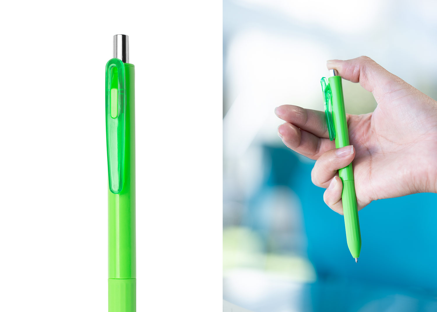 Bolígrafo con cuerpo de color sólido, empuñadura y clip, empujador cromado. Sistema de apertura retráctil. (Bolígrafo/Esfero)