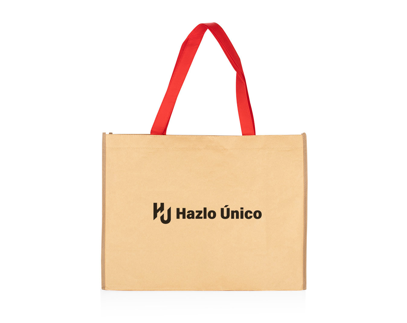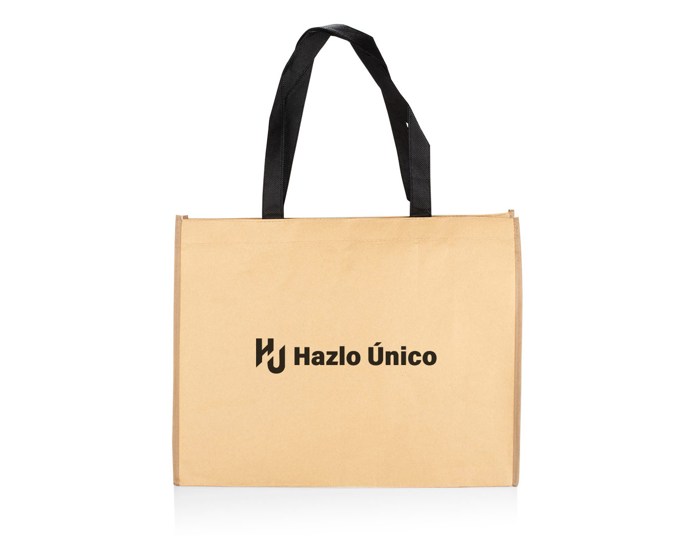Bolso tipo tote fabricado en tela no tejida compuesta de papel kraft, con mangos en tela no tejida de 80 g/m². Cuenta con un compartimento principal abierto, ideal para llevar documentos, compras o artículos personales. Su diseño es simple, espacioso y amigable con el medio ambiente.
