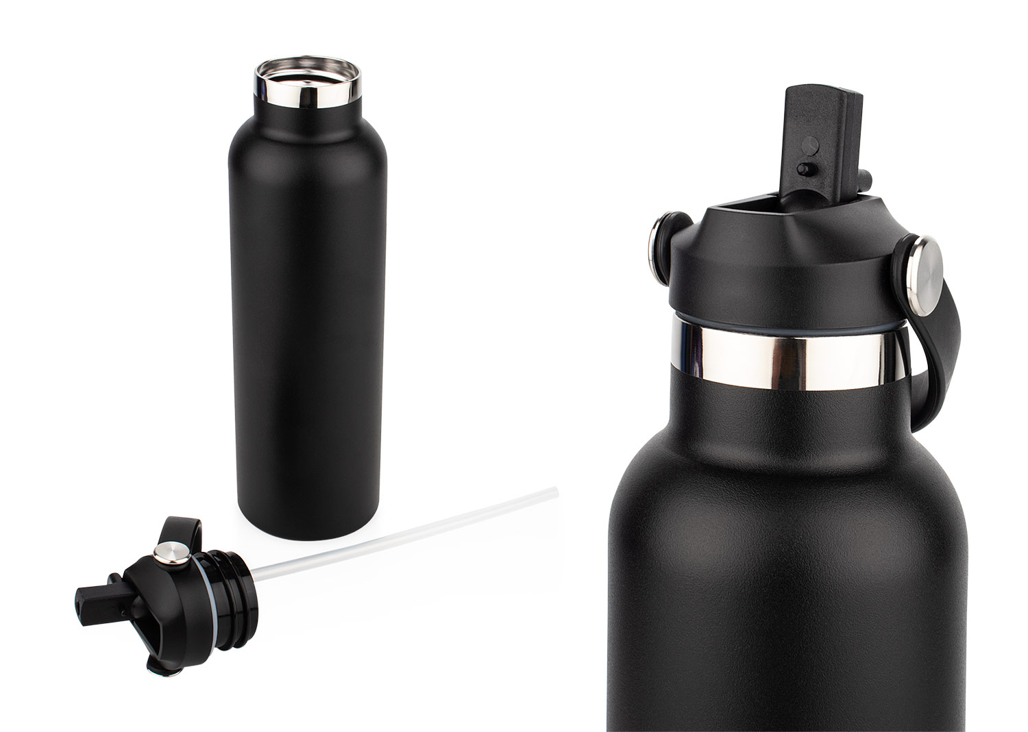 Botella térmica con interior en acero inoxidable 304 y exterior en 201, ideal para mantener la temperatura de tus bebidas. Mantiene las bebidas frías por 24 horas y las bebidas calientes por 12 horas. Incluye pitillo integrado y una boquilla que puede sacarse o guardarse según preferencia. Su tapa cuenta con cierre giratorio y un asa resistente para facilitar el transporte. Funcional, moderna y perfecta para uso diario o actividades al aire libre. Capacidad: 650 ml / 22 Oz.