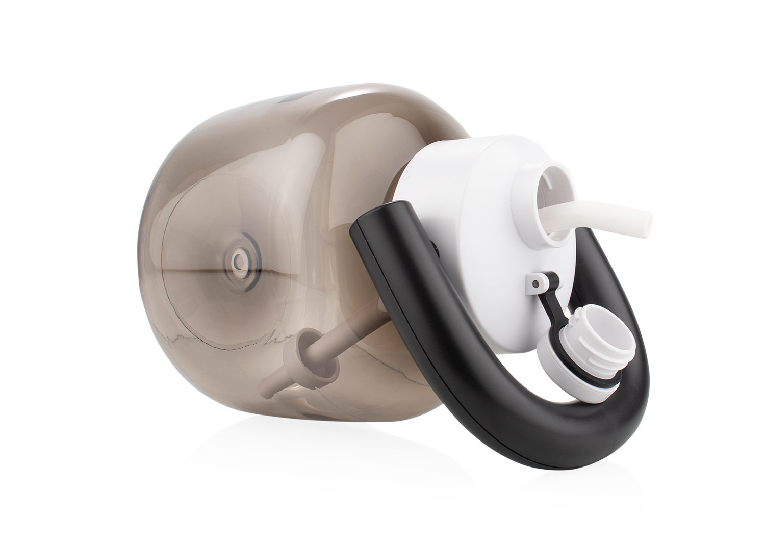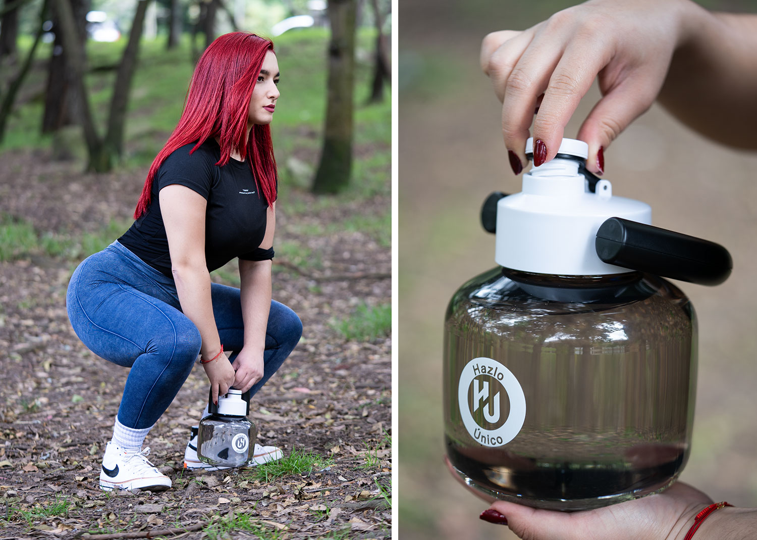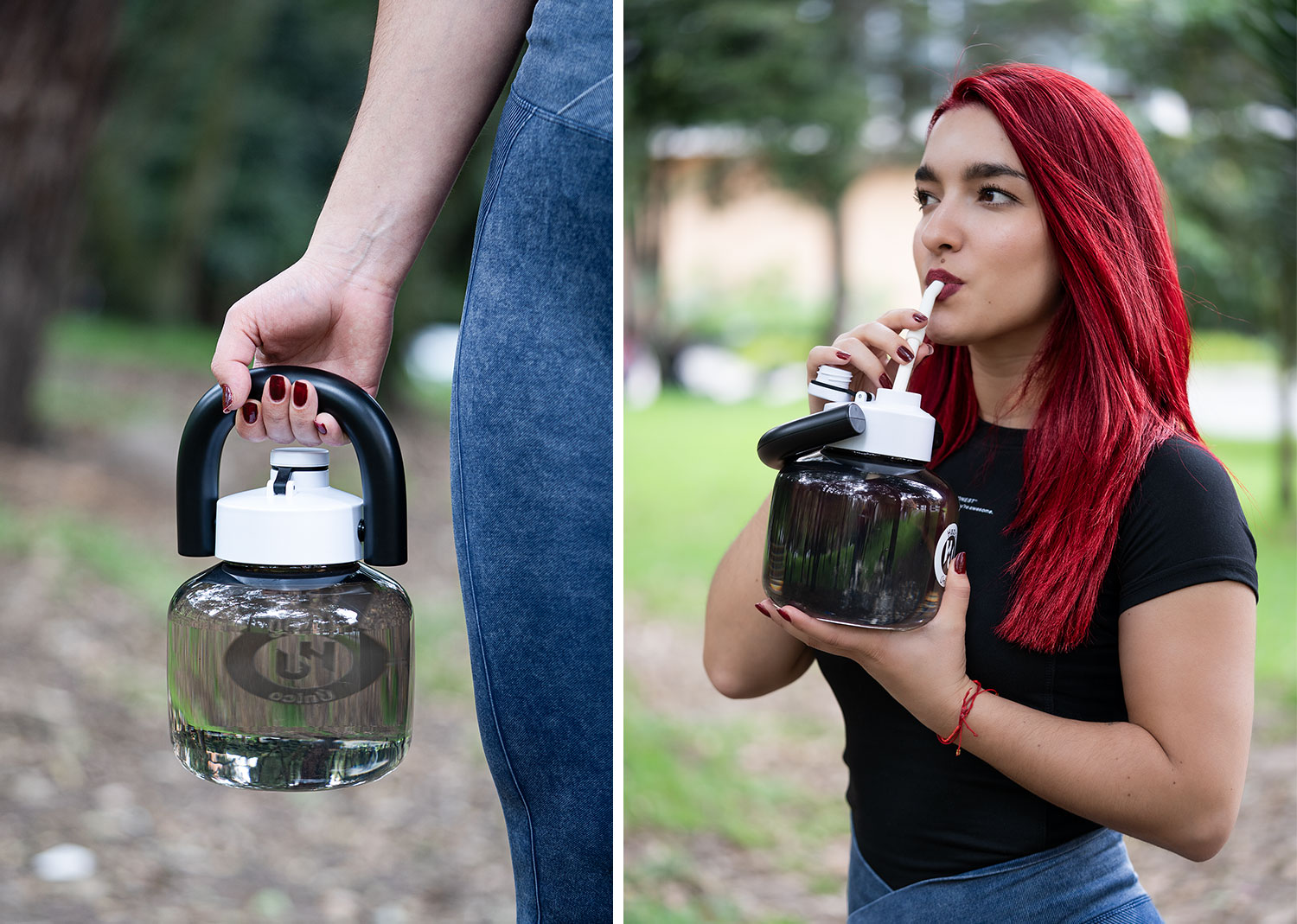 Botella con diseño práctico que cuenta con asa resistente para fácil transporte. Su tapa incorpora un tapón con cierre giratorio y pitillo integrado, facilitando el consumo de bebidas de forma cómoda y segura. Ideal para uso diario. Capacidad: 2200 ml / 74 Oz.