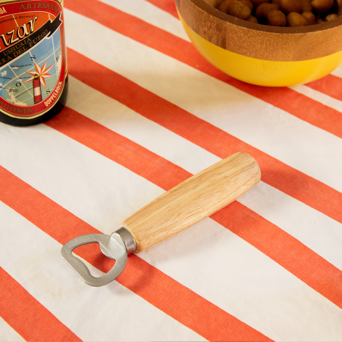 Destapador con mango de madera barnizada.
