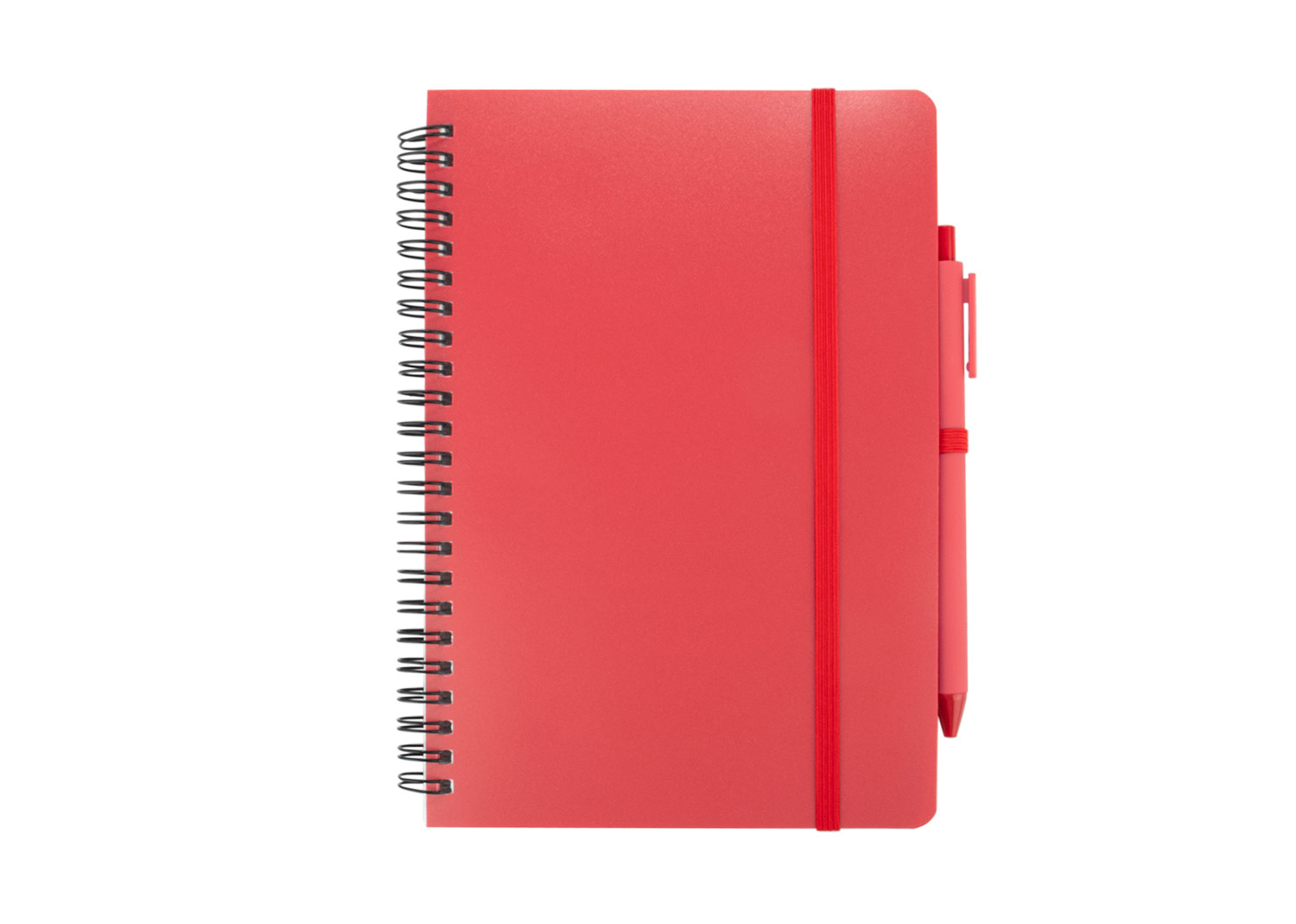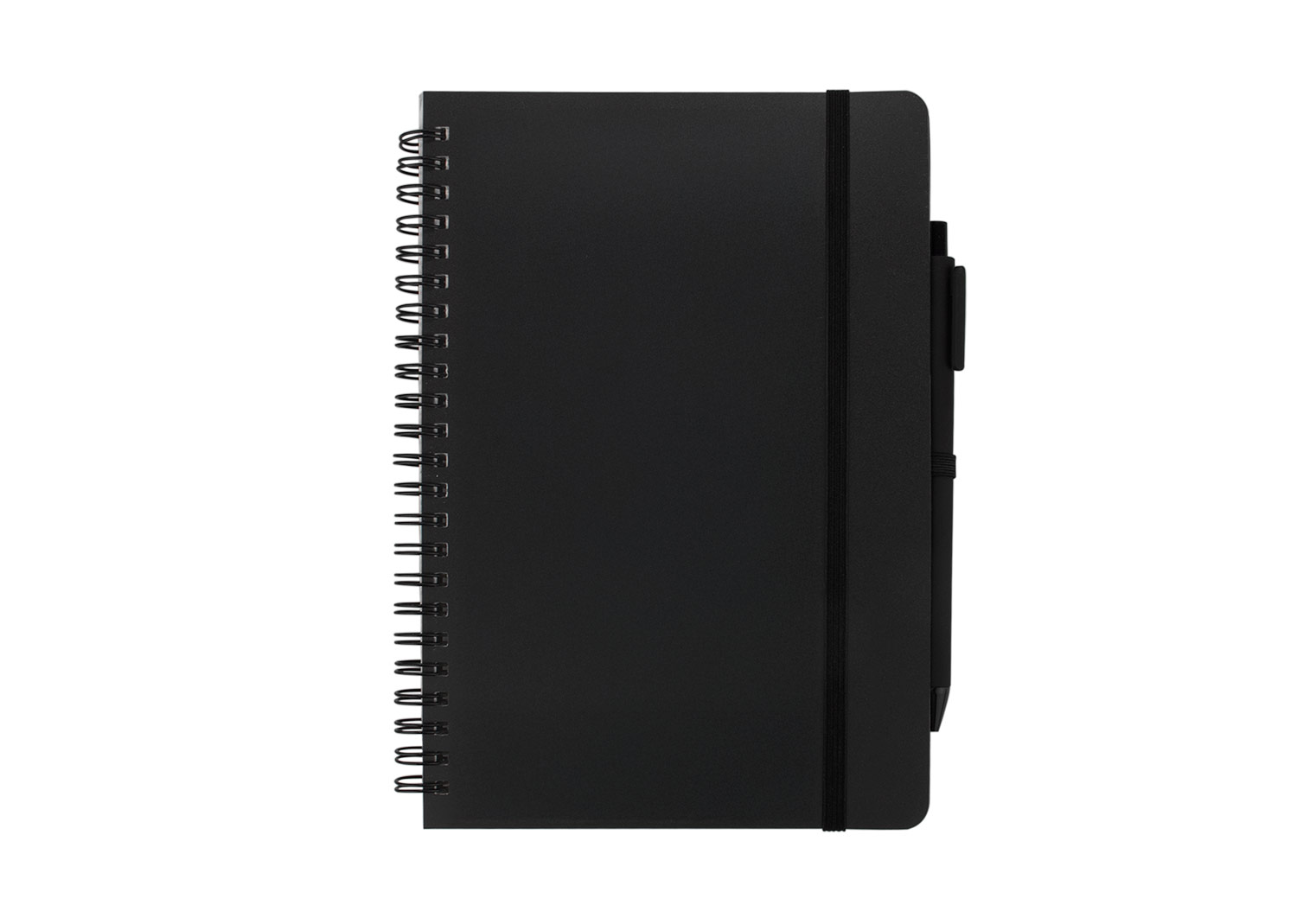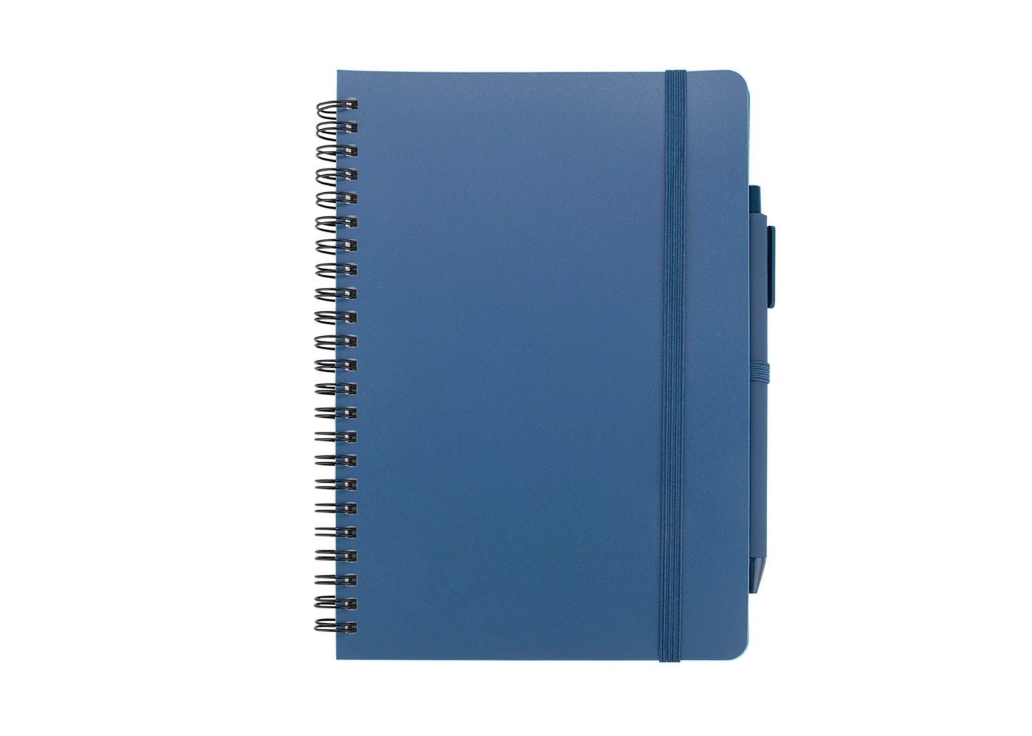 Libreta A5 argollada. Cubierta hecha de plástico recuperado del océano. Banda elástica para cierre. Incluye bolígrafo. Hojas rayadas.