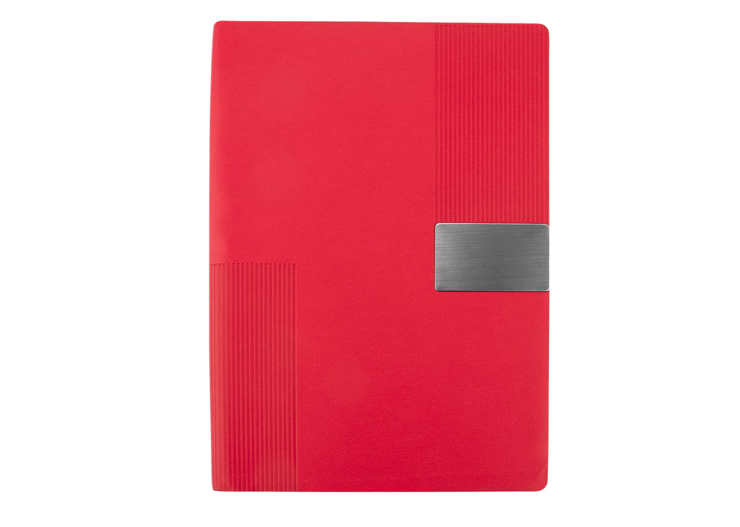 Libreta A5 con cubierta de PU suave al tacto, con elegante patrón en relieve y placa metálica decorativa con protector. Contiene 80 hojas rayadas de papel reciclado, ideales para escritura cómoda y organizada. Incluye cinta separadora para marcar tus páginas importantes. Su diseño moderno y profesional la convierte en una excelente opción para uso personal o corporativo.