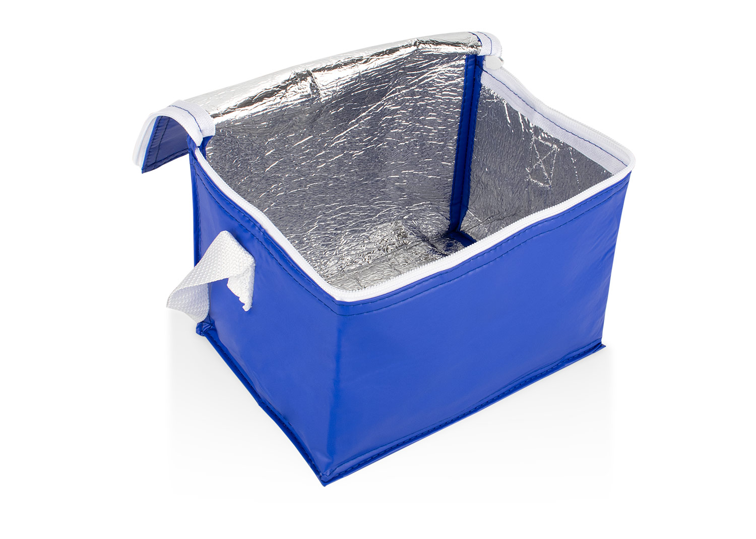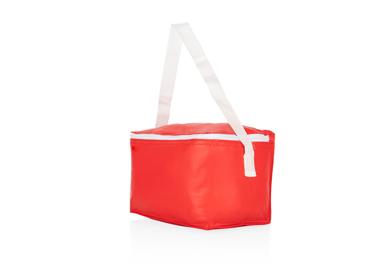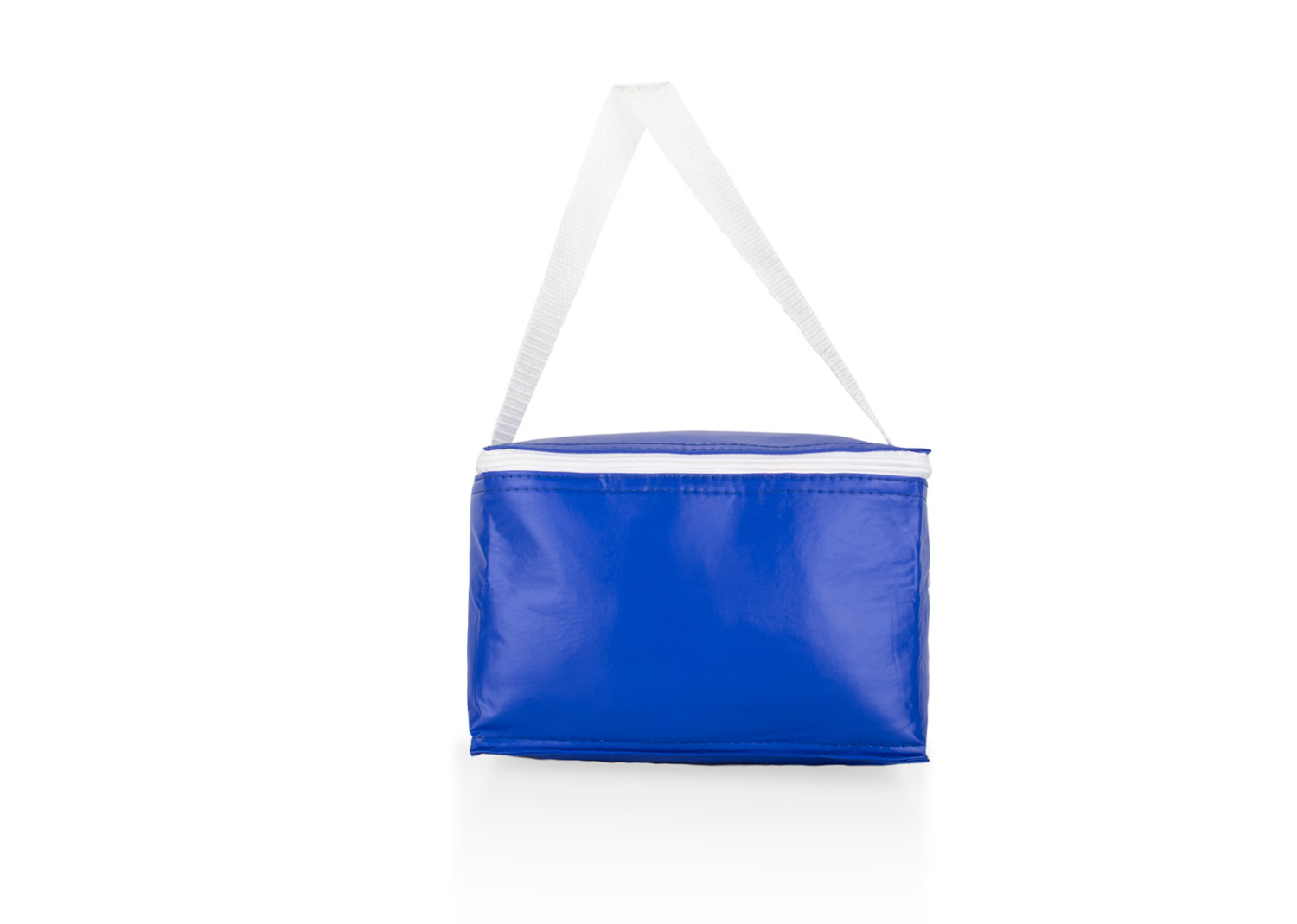 Bolsa térmica compacta fabricada en PVC, ideal para mantener bebidas y alimentos fríos. Su diseño incluye una cremallera superior, correa de transporte blanca. El interior está diseñado para conservar la temperatura, siendo perfecta para uso personal, almuerzos o actividades al aire libre.