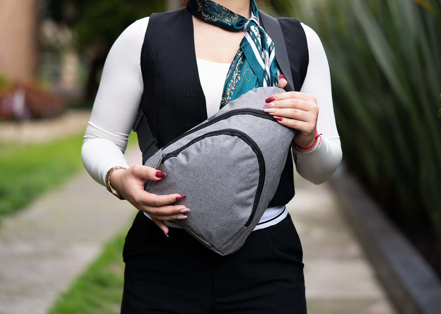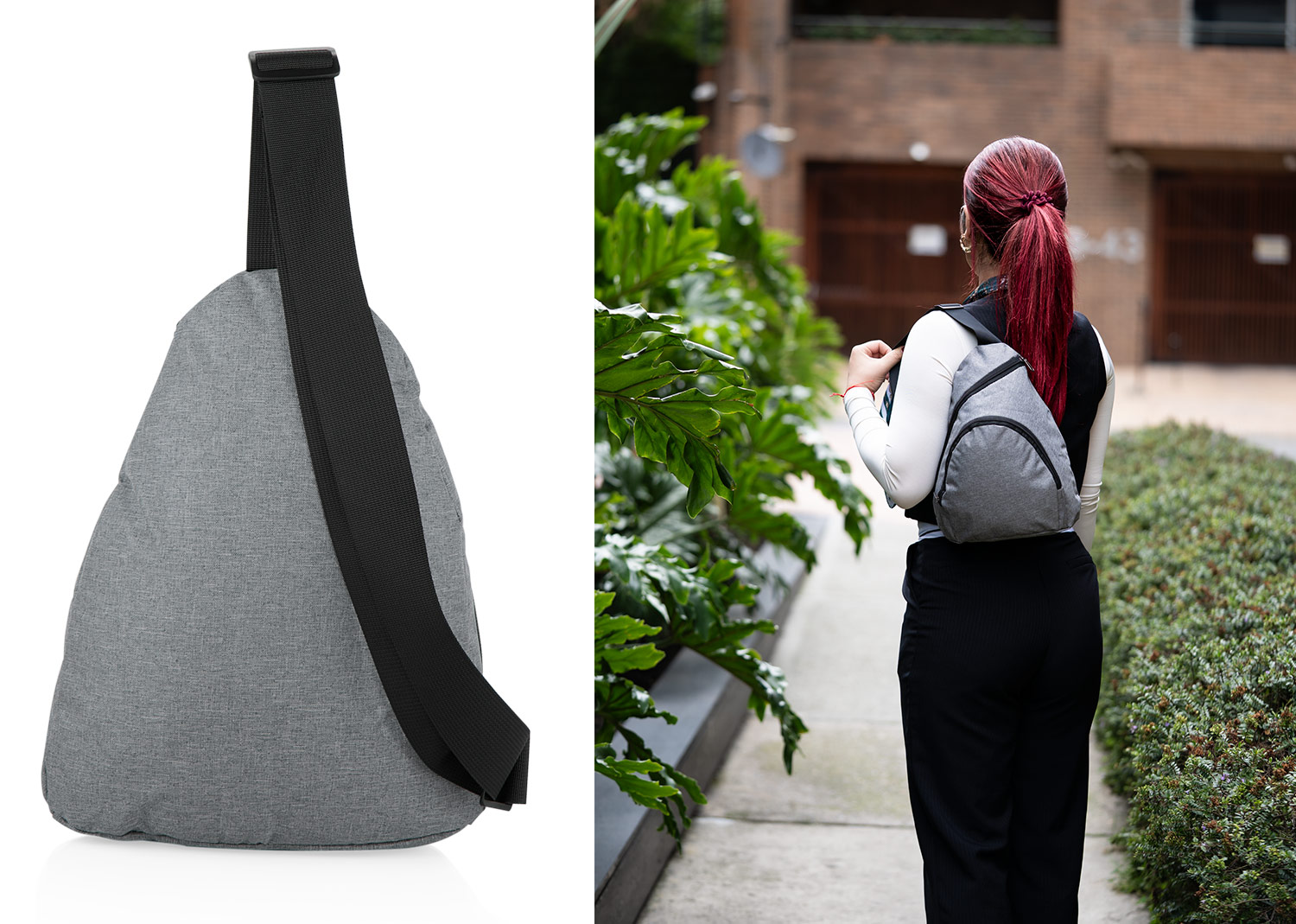 Bolso tipo sling con diseño compacto y funcional. Cuenta con bolsillo frontal con cremallera y correa ajustable para mayor comodidad. Ideal para llevar objetos personales de forma práctica en actividades al aire libre o en la rutina diaria.