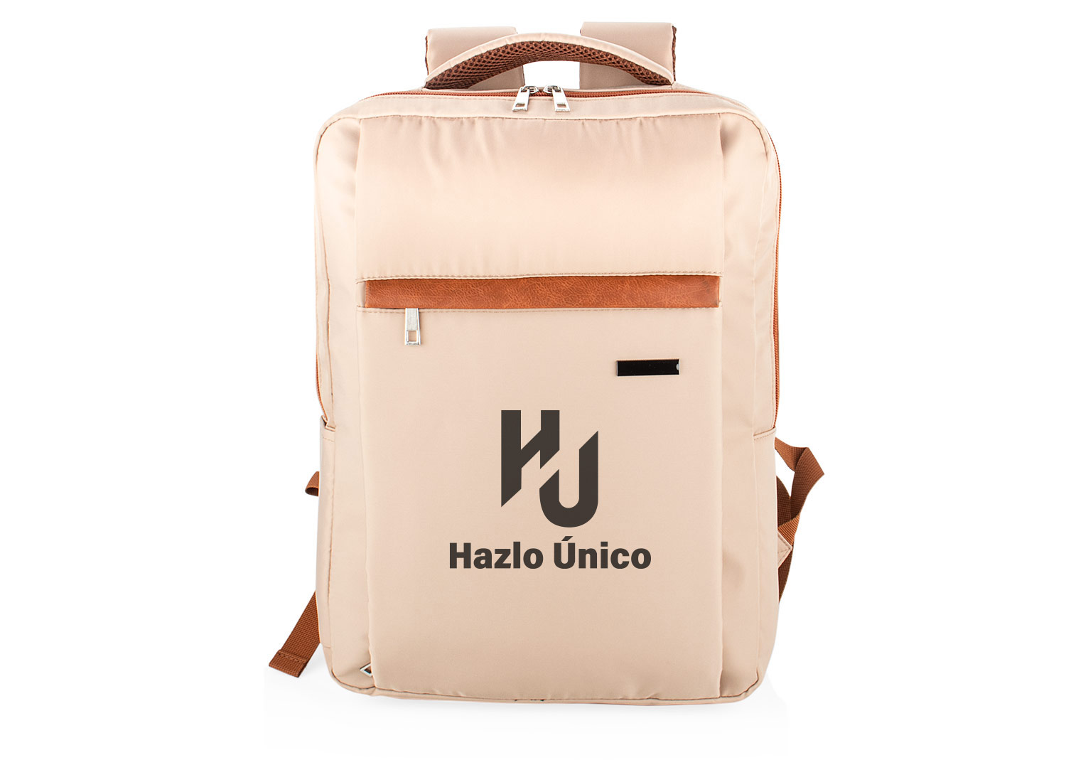 Esta mochila combina estilo y funcionalidad en cada detalle: cuenta con bolsillo frontal, un compartimiento lateral práctico, y un interior organizado con compartimiento con seguro, dos bolsillos pequeños adicionales, dos espacios para bolígrafos, y una placa con protector que aporta un toque distintivo y mayor durabilidad. Volumen aproximado: 12 litros.