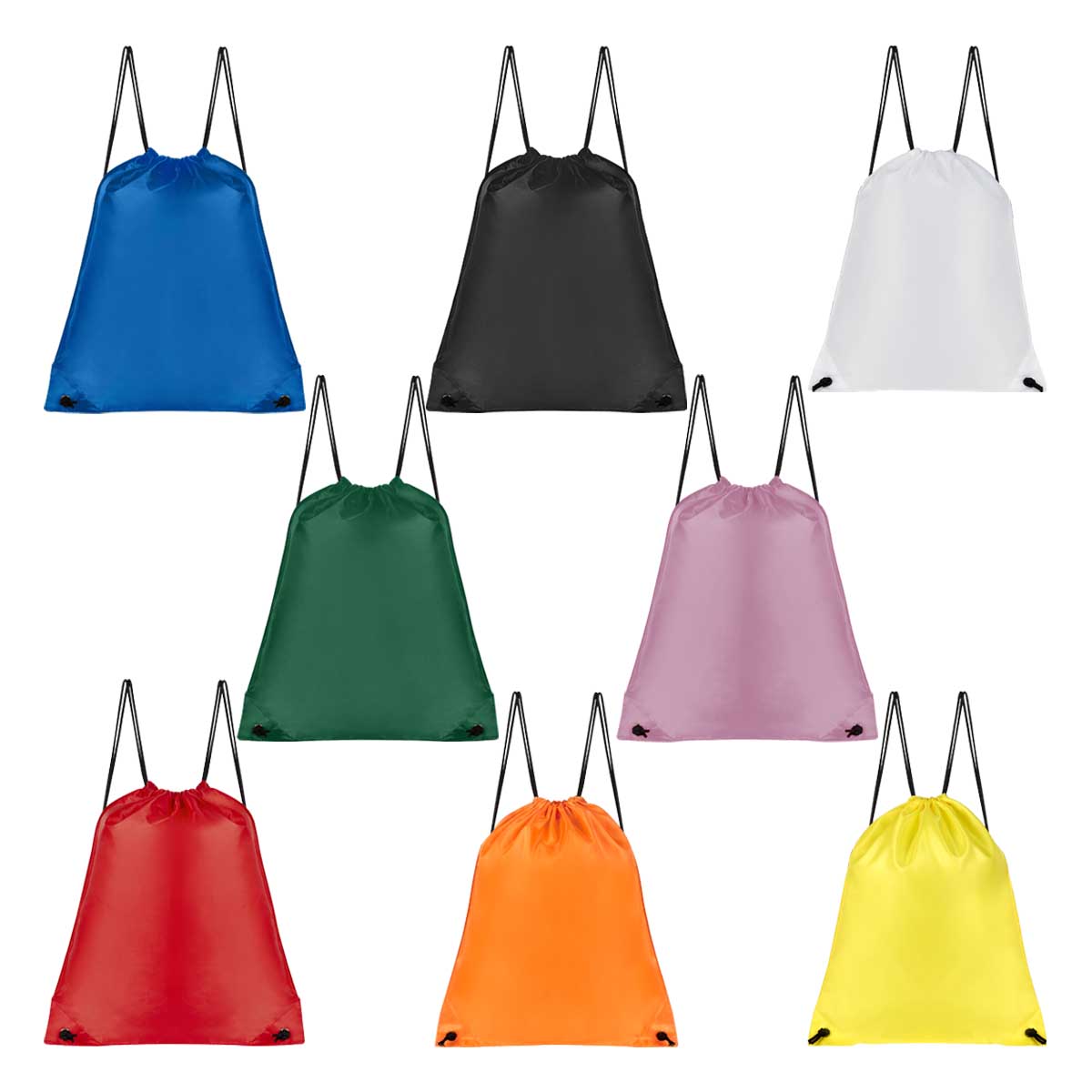 Bolsa-mochila con tirantes de cordón y cerrado de jareta.