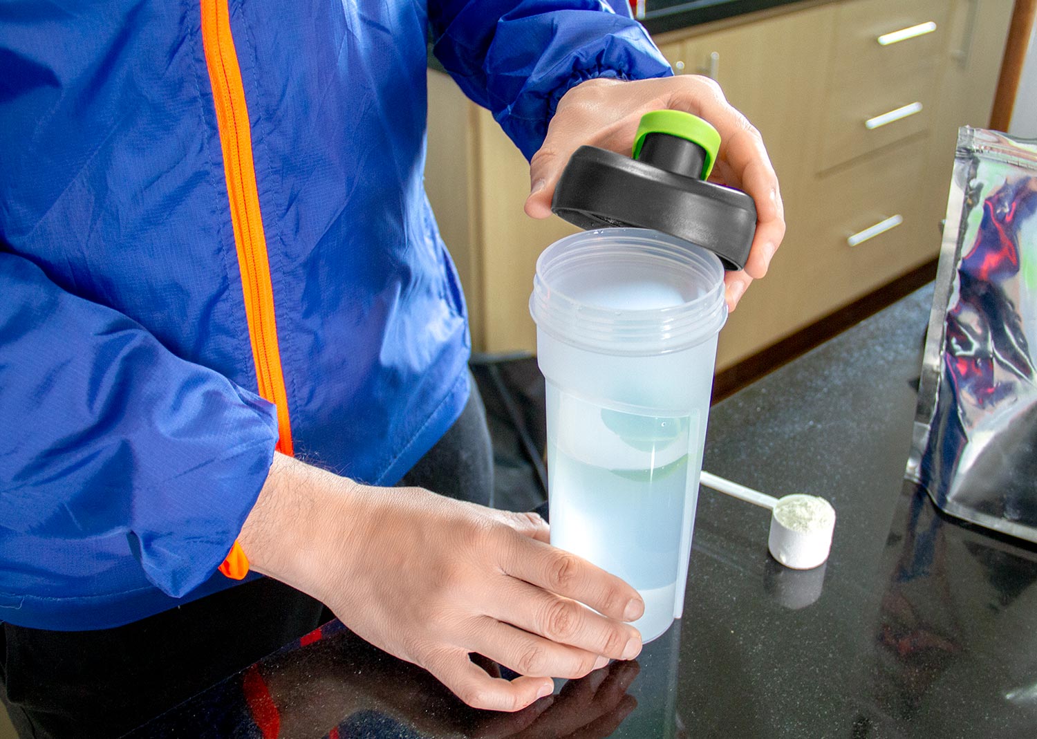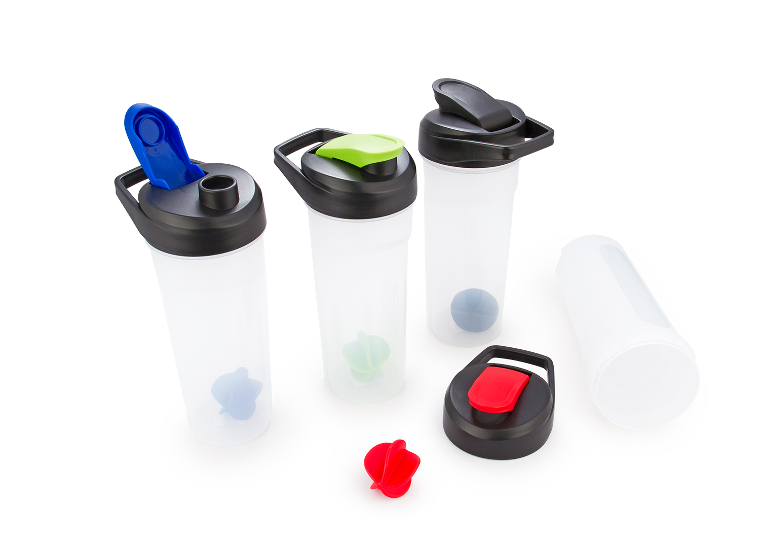 Botella deportiva con agarradera y shaker. Tapa rosca con boquilla de cierre a presión. En PP Libre de BPA, ftalatos u otras sustancias nocivas. No retiene ni transmite sabores u olores. Capacidad 600 ml. / 20 Oz.