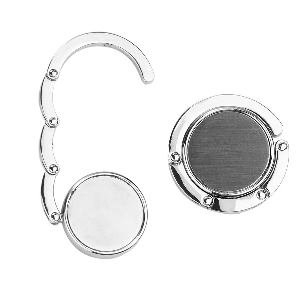 Anillo metálico porta bolsos, práctico y compacto. Diseñado para colgar bolsos de forma segura en el borde de cualquier mesa, manteniéndolos limpios y siempre a la mano.