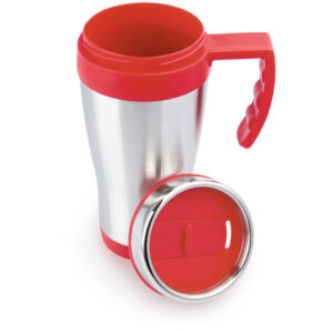 Mug térmico de doble pared con tapa de presión y boquilla con seguro corredizo. Diseñado para conservar la temperatura de tus bebidas, su tapa transparente se ajusta bajo presión y cuenta con un mecanismo de cierre deslizante para mayor seguridad. Capacidad: 380 ml / 13 Oz.